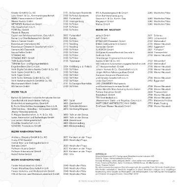 Ing. Herbert Kornfeld, Turbotherm e.U. 2380 Perchtoldsdorf Wittur Austria GmbH 3270 Scheibbs Gesellschaft mit beschränkter Haftung 3451 Spital ‚Wassermann‘ Stahl- und Regalbau Ges.m.b.H. 2751 Matzendorf-Hölles