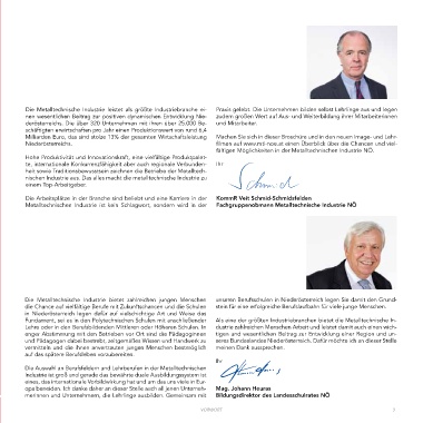 Die Metalltechnische Industrie leistet als größte Industriebranche ei- Praxis gelebt. Die Unternehmen bilden selbst Lehrlinge aus und legen